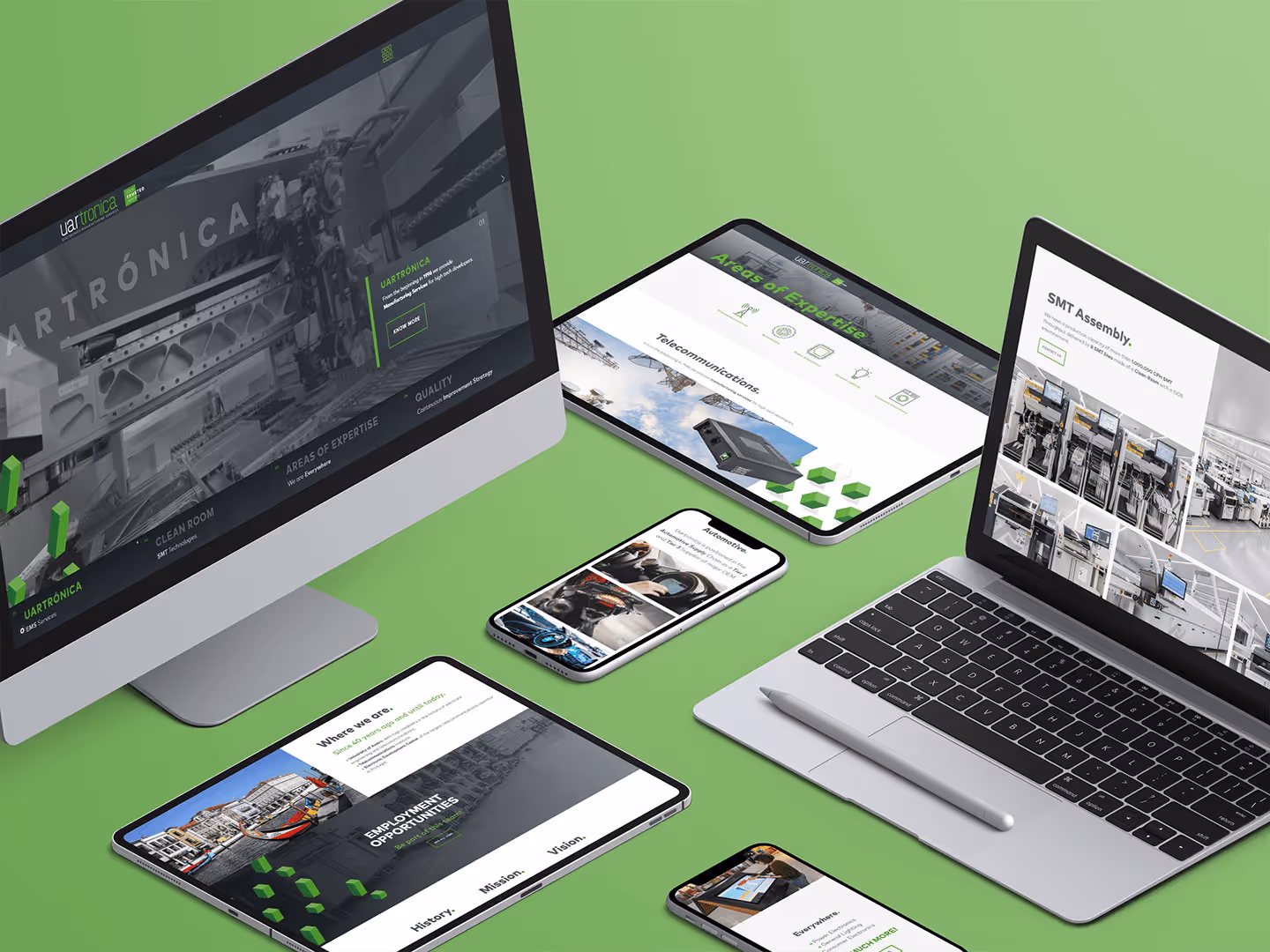 A Uartrónica é uma referência no setor da eletrónica, mas a sua presença digital não acompanhava a evolução tecnológica da fábrica. Fomos desafiados a alinhar a sua imagem corporativa com a excelência da sua engenharia.